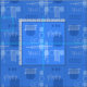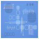Un diseño de arte abstracto moderno de mediados de siglo que hubiera encajado en los años 50. Diversas formas de círculos ovalados y líneas en azul verdadero.