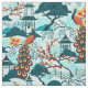 Tela azul del Chinoiserie del pavo real