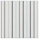 Esta tela tiene un patrón rayado con rayas azul marino, azul acuático claro y gris carbón vegetal contra un fondo blanco de cáscara de huevo para una fresca paleta de color de verano.