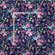 Un bonito colorido floral vintage con un colorido jardín florido lleno de elegantes rosas rosas rosas rosas y mariposas de bonito sobre fondo marino azul.