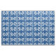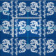 Tela magnífica con adornos asiáticos. Las líneas de bambú separan el modelo principal de dragones y de un medallón chino. En azules añiles y blanco.