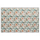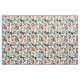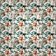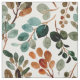 tela de bonito con azul/verde azulado, naranja rojizo/quemado y hojas de acuarela verde salvia sobre blanco.