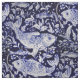 Tela Azul y blanco Koi Pescado Indigo Intricado Tejido
