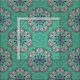 Un diseño de hermosas flores de mandala dibujadas a mano en un estilo decorativo, arreglado en un patrón sin fisuras simétricas. Colorido en tonos verde menta y violeta de lavanda clara.