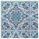 Este producto tiene un diseño intrincado con un fondo azul oscuro y patrones ornamentales blancos. El diseño recuerda a los estilos tradicionales de cerámica o porcelana, que pueden interesar a los amantes de la estética clásica o vintage.
