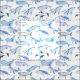Tela Ballenas acuarelas con patrón delfines