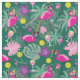 Tela Baloncesto tropical con flamencos, verde