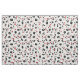 Esta tela temática de fútbol presenta un patrón arreglado al azar de balones de fútbol de tamaño variado y corazones de confetti rosados y rojos dispersos en un fondo blanco personalizable - las bolas de fútbol más grandes en el patrón miden aproximadamente 2 pulgadas, pero el patrón se puede escalar a tu gusto - por katz_d_zynes