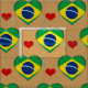 TELA: Bandera brasileña y corazón rojo, Brasil - amo a mi país, patriota nacional, viajes, vacaciones / deportes hinchas