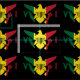 Bandera de las Islas Vírgenes de Estados Unidos sobre un fondo de rayas verticales rojas, amarillas y verdes