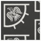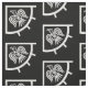 Un ilustracion blanco y negro de la bandera del Raven que ondeaba guerreros y chozas.