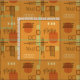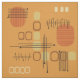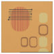 Un diseño de arte abstracto moderno de mediados de siglo que hubiera encajado en los años 50. Diversas formas de círculos ovalados y líneas en ocre, naranja y oro.