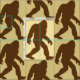 Tejidos de Fun Bigfoot estampados con motivos de Bigfoots marrones oscuros en un fondo beige