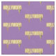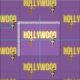Patrón de tela divertida presenta Hollywood en texto de neón con dos bellezas vintage recortes de foto en fondo morado