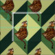 Un gato de Bengala del dibujo animado se sienta en un fondo de cuadrados verdes. Los varios tonos dan una ilusión 3D de un efecto de paso de la escalera. La mirada y él Keep parecerán como si los cambios de imagen. Personalizar selecto a cambiar, a inclinar y a jugar con los efectos.