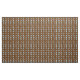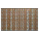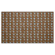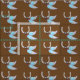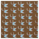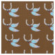 Tela con una obra de arte de baldosas de una herradura y plumas azules de fondo marrón.
