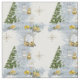Decoración espumosa de árboles dorados y plateados rodeados por un follaje festivo de color verde salado con nieve recién caída en invierno maravilla impresión de tela repetida de invierno