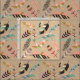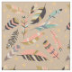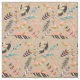 Las imágenes de plumas de estilo bonito boho en colores azul verde azulado, dorado, gris oscuro, rosa polvoriento y crema flotan a través de un fondo de color marrón claro en esta tela única. Fantástico para muchos proyectos domésticos o artesanales, o vestimenta.