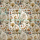 Las flores de marfil y de naranja pálido, con acentos verde azulados y tostados, en un fondo beige, crean un tejido deliciosamente boho. El diseño es bonito y perfecto para ropa o colchas.