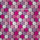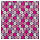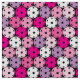 Patrón de bola de picnic rosa, púrpura y blanca sobre fondo negro.