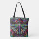 Por todo el tote impreso con arte el nouveau inspiró diseño de la libélula del pointillism.