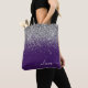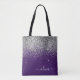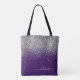 Bolso de mano elegante con brillo y glitter morado y plateado con monograma. Este bolso se puede personalizar para incluir tu inicial y nombre y regalarlo en Navidad, cumpleaños de Sweet 16, despedida de soltera o boda.