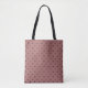 Este bolso tote tiene un fondo de color rosa polvoriento y lunares negros. Está pensado para cualquiera que disfrute de acentos chic de estilo boutique y diseños minimalistas.
