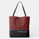 Esta encantadora bolsa de mano con estilo muestra la palabra "Dama de honor" en color de texto blanco sobre negro con la parte superior de la bolsa en Merlot personalizado. Tiene mucho espacio para texto personalizado. Los gráficos y el texto están en ambos lados de esta bolsa de mano. Asa negra. Personalice aún más o compre como se muestra.