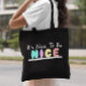 Difunde buenas vibras dondequiera que vayas con este bolso de mano “It's Nice To Be Nice”. Simple, sincero y elegante, es el recordatorio perfecto para liderar con amabilidad. Ideal para recados diarios, compras de libros, días de playa o como regalo considerado para alguien que irradia positividad.