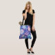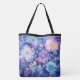 Esta bolsa tote de hombro se muestra con un hermoso diseño de estampado floral múltiple azul de peonías.