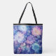 Esta bolsa tote de hombro se muestra con un hermoso diseño de estampado de peonías multicolores azules.