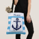 Dos tamaños para elegir con la opción de agregar su nombre en la parte delantera de esta bolsa de playa azul y blanca.