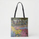 Un bolso de mano personalizado con una acuarela de Roseann Meserve de los jardines en Prescott Park Portsmouth NH