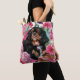 Bolsa de tocador con Black and Tan Cavalier rey charles spaniel diseño de arte. Fondo floral de rosas y claveles rosas.Disponible en dos tamaños. Hace un regalo encantador para los amantes del perro!