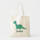 La bolsa de asas personalizada dinosaurio. Bolso de la materia textil del cumpleaños/de la celebración con Dino sonriente.