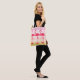 Crea un bolso de teta de flamingo rosado personalizado, añade tu propio nombre o texto para personalizarlo con rayas chic y chic en tonos rosas y amarillos por toda la impresión.