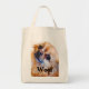 El bolso de ultramarinos reutilizable que exhibe Chiuahua de pelo largo hace frente y "TEJIDO"