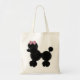 La bolsa de asas reutilizable linda de la lona, con los gráficos adorables de un caniche de mirada mullido negro, con un arco rosado del lunar. El personalizar para añadir el texto a esta diversión de uso múltiple lleva todo el bolso. Grande para los niños y los adultos.