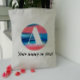Aquí tienes un bolso divertido y sencillo con un monograma de letra A. El diseño de círculos en coral y azul es genial si quieres darle un toque de estilo a tu look. Tiene un estilo simple y minimalista, perfecto para mantener las cosas fáciles y con estilo.