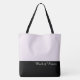 Este hermoso bolso tote de moda muestra la palabra "Dama de honor" en color de texto blanco sobre negro con la parte superior del bolso en orquídea suave blush personalizada. Tiene mucho espacio para texto personalizado. Los gráficos y el texto están en ambos lados de este bolso tote. Asa negra. Personalice aún más o compre como se muestra.
