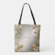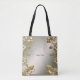 Tela Bolso Tote Ornado de Flor Blanca Dorada