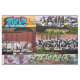 Un collage de la captura colorida intrépida de la pintada de los trenes y de los edificios en Cincinnati OH