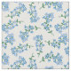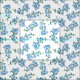 Tejidos florales chic de Shabby con un patrón de olvidar que no las flores en azul contra un fondo blanco.
