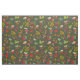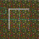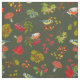 Tela con las plantas del otoño y del invierno, ilustracion de los pájaros y de las setas en fondo verde oscuro.