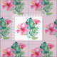 Tejidos tropicales con motivos florales y verdes, flores de hibisco rosa y hojas de monstera verde sobre un fondo rosa pálido. La paleta de colores rosa y verde es perfecta para tu próximo proyecto de artesanía o decoración. Para cambiar la escala de este patrón, simplemente haga clic en "Personalizar" y ajuste el tamaño del mosaico.