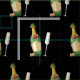 Botella de vino espumoso abierta con vaso lleno. Color de fondo personalizado. Patrón sin foco.