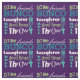 Un jugador de Fun Bunco inspiró el diseño de arte en el metro con términos que siguen el juego de Bunco. Dice, amigos, buenos tiempos, corre, chatea, tira y risas. Concepto original de Artinspired. El color de fondo púrpura se puede cambiar por el color elegido.