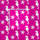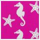 Tela Caballo de mar y pez estrella - blanco en rosa fuc