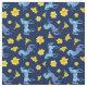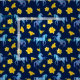 Un colorido patrón de bonito con caballos azules sobre un azul marino oscuro, rodeado de flores amarillas de lirio Stella D'oro. Genial para las mujeres que aman los caballos.