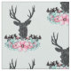 Tela Cabeza de ciervo negro con flores y montañas rosas